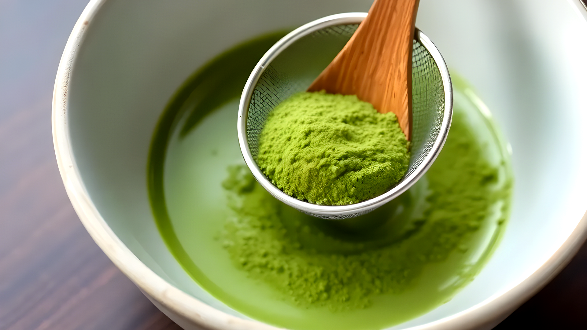 Use a tea strainer to sieve 2 teaspoons (approx. 2 g) of matcha into your matcha bowl. This step removes lumps and ensures a smooth texture.